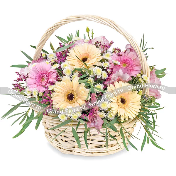 Весенний сюрприз - корзина с желтыми и розовыми герберами (акционное предложение)