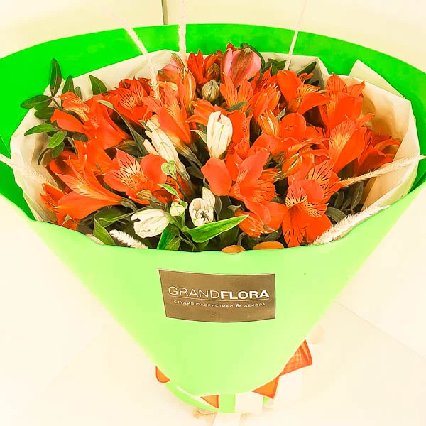 Очень красивый букет, альстромерия постояла почти 2 недели, за это отдельное спасибо. Видно было что букет из свежих цветов. 5+!